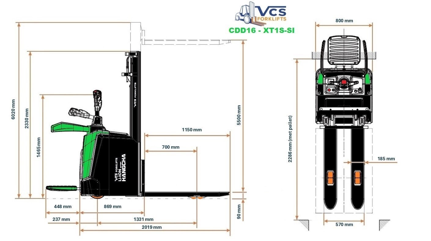 - Hefhoogte: 5500 mm ( triplex met vrije heffing )